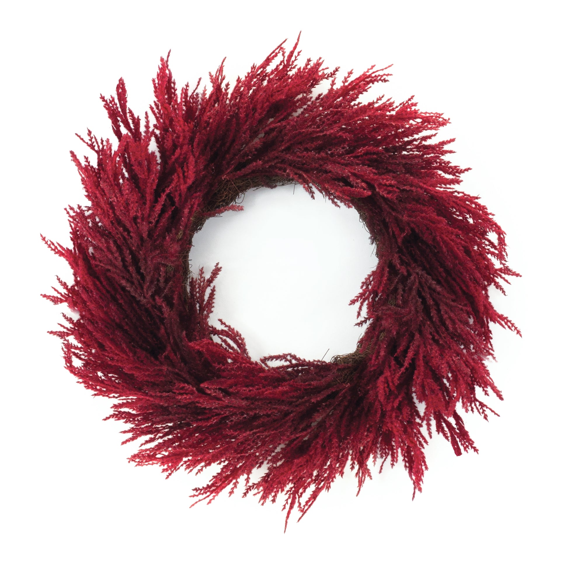 Welcome guests to your home this fall season with a Fall Plume Wreath! Featuring natural burgandy tones and flocked plume design, this wreath is sure to fit right in with your autumn decor. The quality plastic compsosition is sure to endure for seasons to come. Adorn your front door or entry way to add a welcoming touch of nature to your space.
