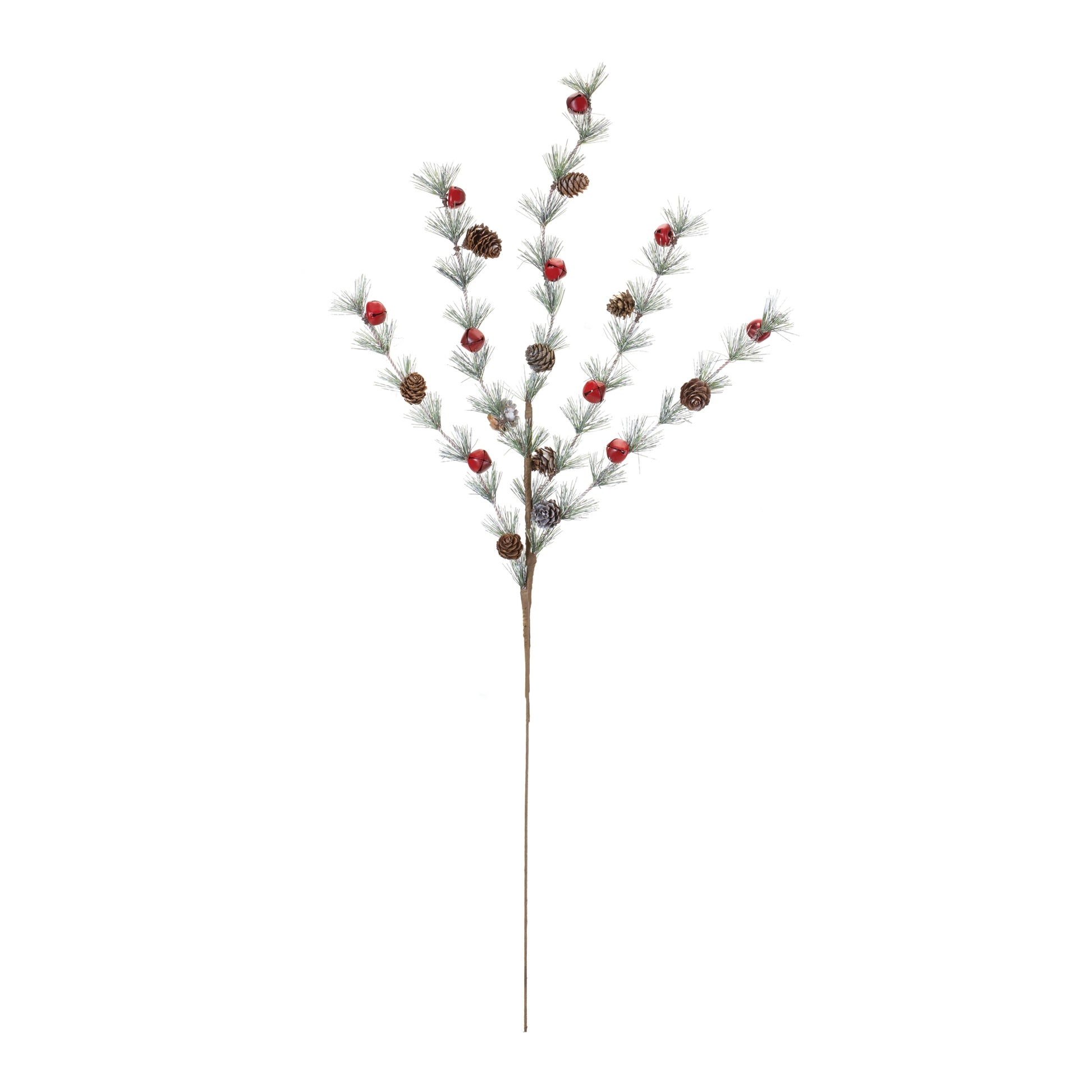 Add a touch of nature to your holiday décor with this beautiful set of Pine/Bell Cone Spray. Featuring 6 pieces, this set is a great accent to your Christmas tree, holiday porch pot, or tabletop vase arrangement. The wintry white, green and brown tones paired with the pinecone and sleigh bell accents are the perfect combination to create a memorable display. The quality plastic and pinecone composition is sure to endure for seasons to come. Complete your holiday decor with this stunning set of Pine/Bell Cone Sprays!