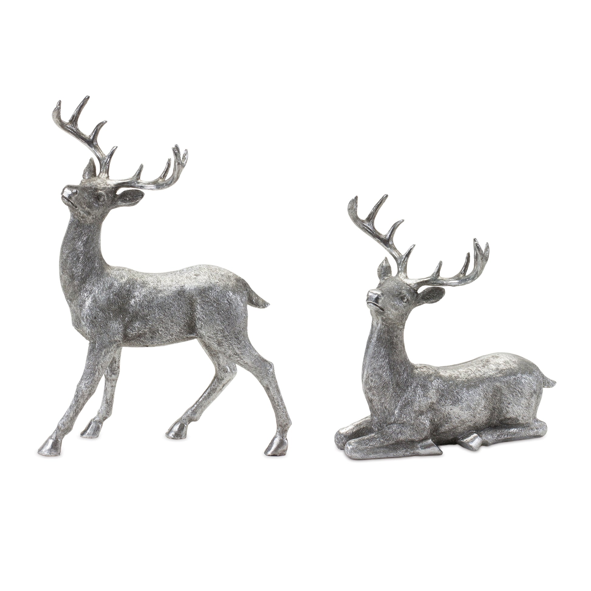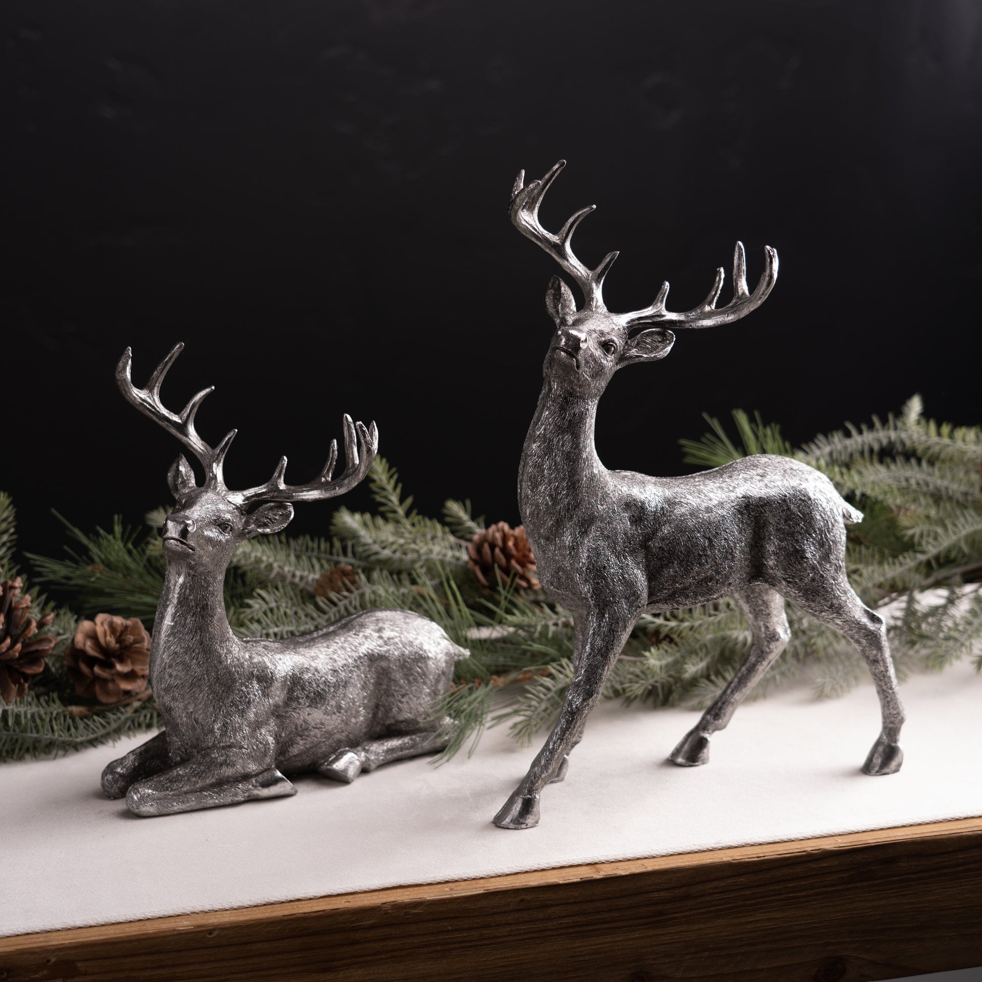 Get ready for the holidays with this beautiful set of Holiday Deer Figurines! The woodland deer design will bring a touch of rustic charm to your home decor. Made of polyresin with a chic silver finish, these beautiful figurines will make the perfect addition to your holiday decorations. Bring some festive cheer into your home with Holiday Deer Figurines today!