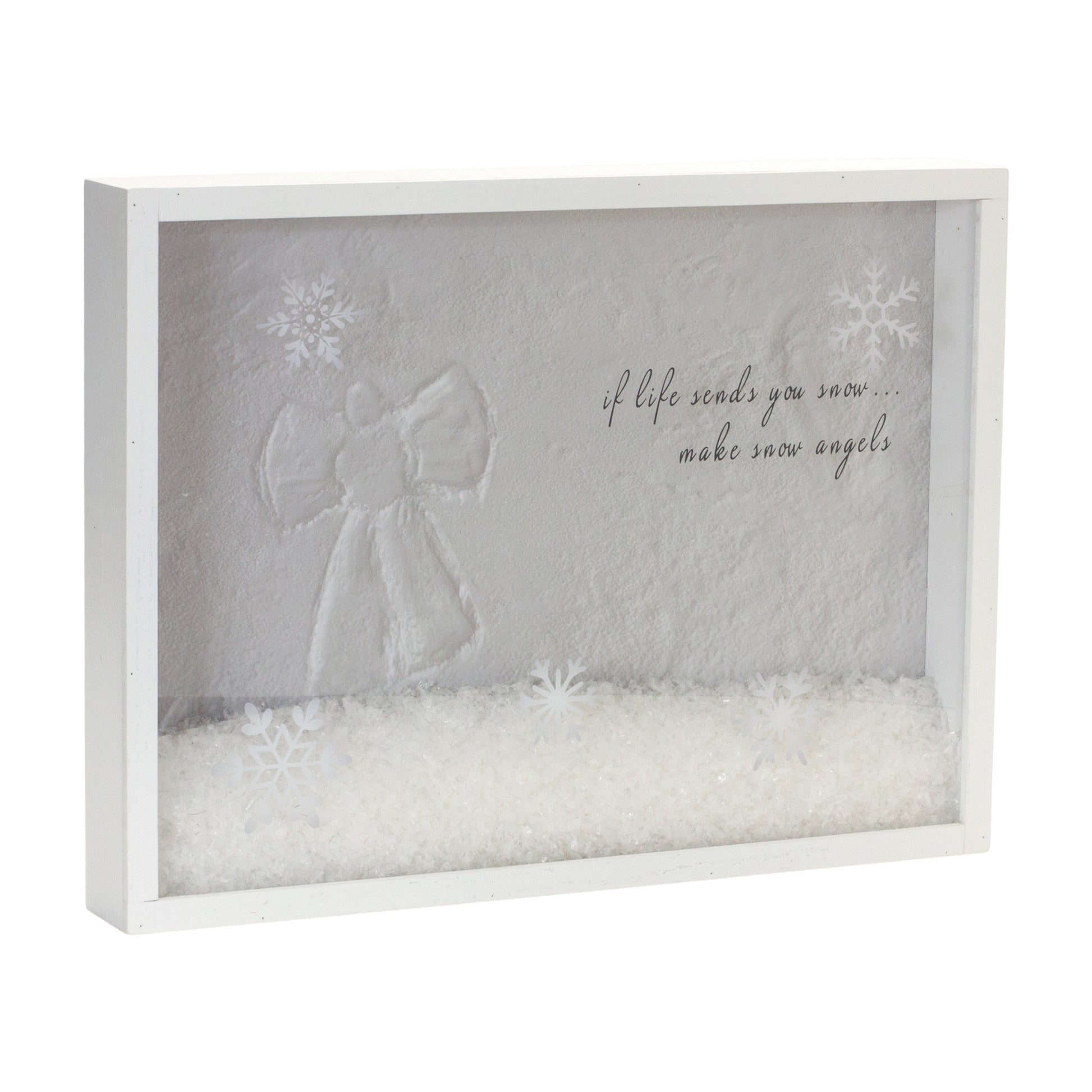 Add a touch of winter magic to your home with the Snow Angel Shadow Box! This elegant piece of decor is crafted with wintry white and grey tones, featuring a snow angel sentiment, glittered snowflake accents, and an MDF wood and acrylic composition. Ideal for tabletop display, the Snow Angel Shadow Box is sure to brighten any room this winter season.