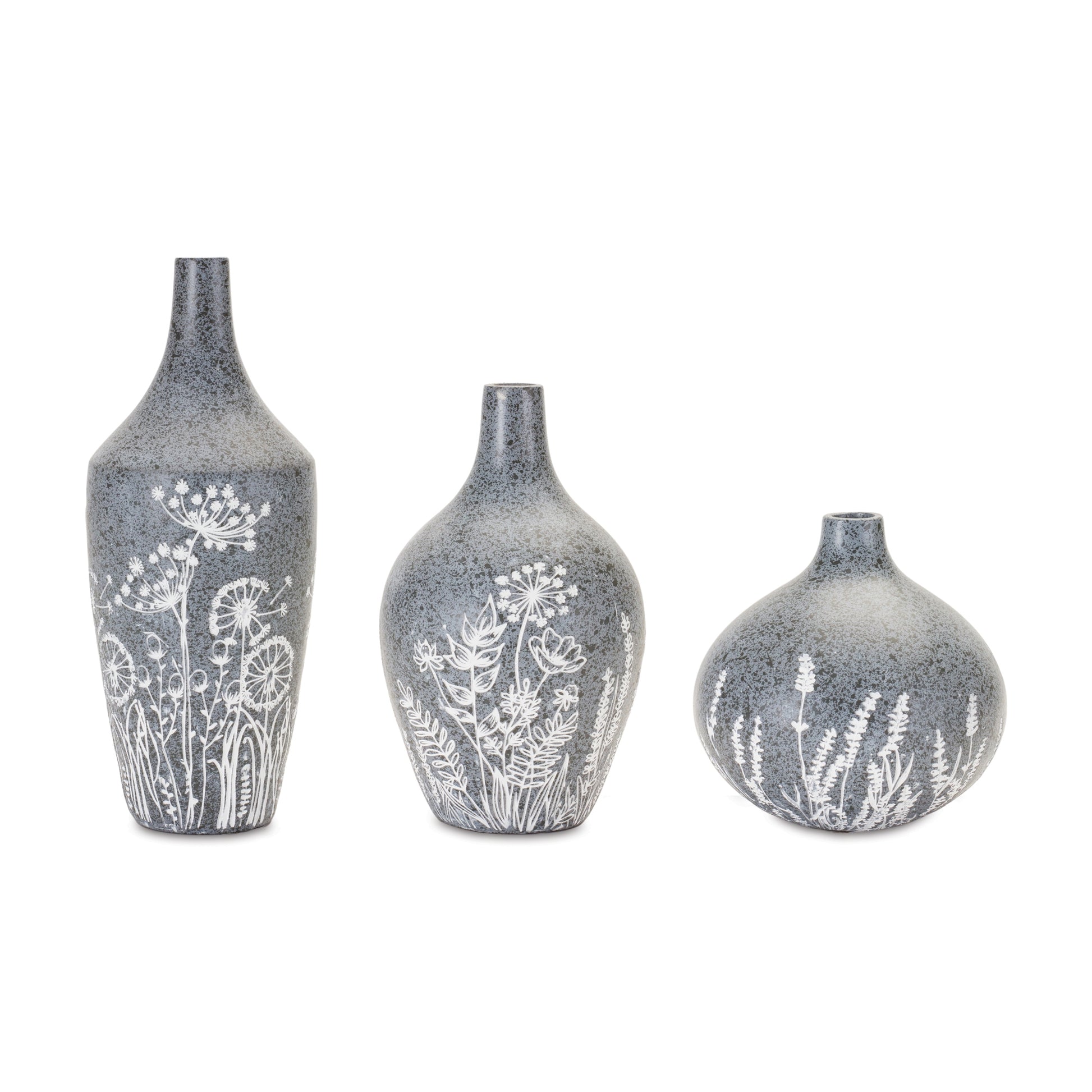 Make a statement with your decor and show off your fresh garden picks in style with this beautiful set of floral vases. Crafted from quality polyresin, these vases come in cool white and grey tones with trendy wildflower etched designs that will look great in any home. Transform any space into a refreshing, blooming oasis that will bring life and beauty to your home. Get yours today!