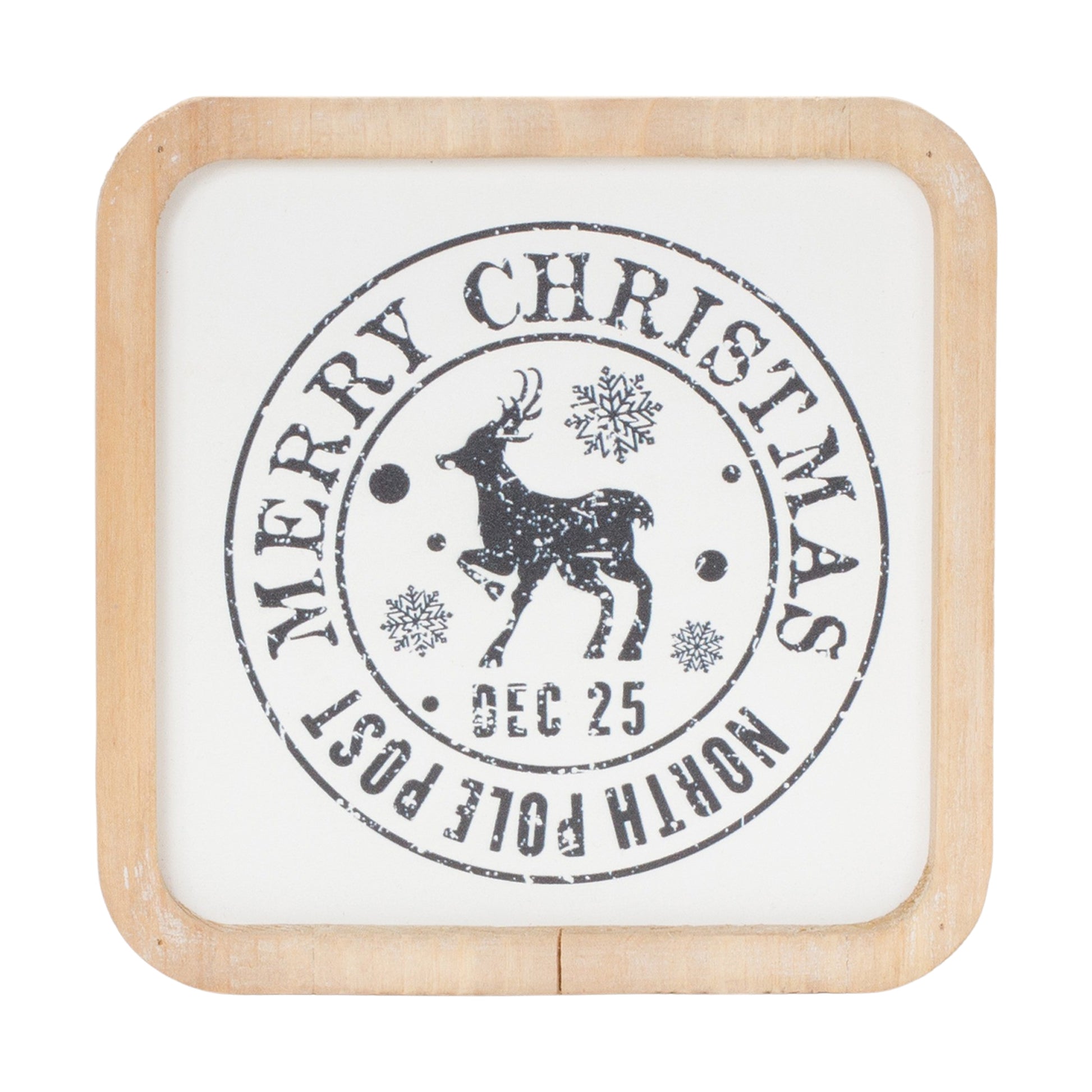Get your home into the holiday spirit with this set of Holiday Mail Stamp Plaques! The elegant and festive wall plaque will bring warmth and holiday cheer to any room. With its neutral white and black tones and elegant cursive font, you can share the message of "Merry Christmas" with your loved ones. The MDF wood composition and natural wood frame ensures a durable yet lightweight piece that will last for years to come. Add some holiday cheer to your home today with Holiday Sentiment Signs!
