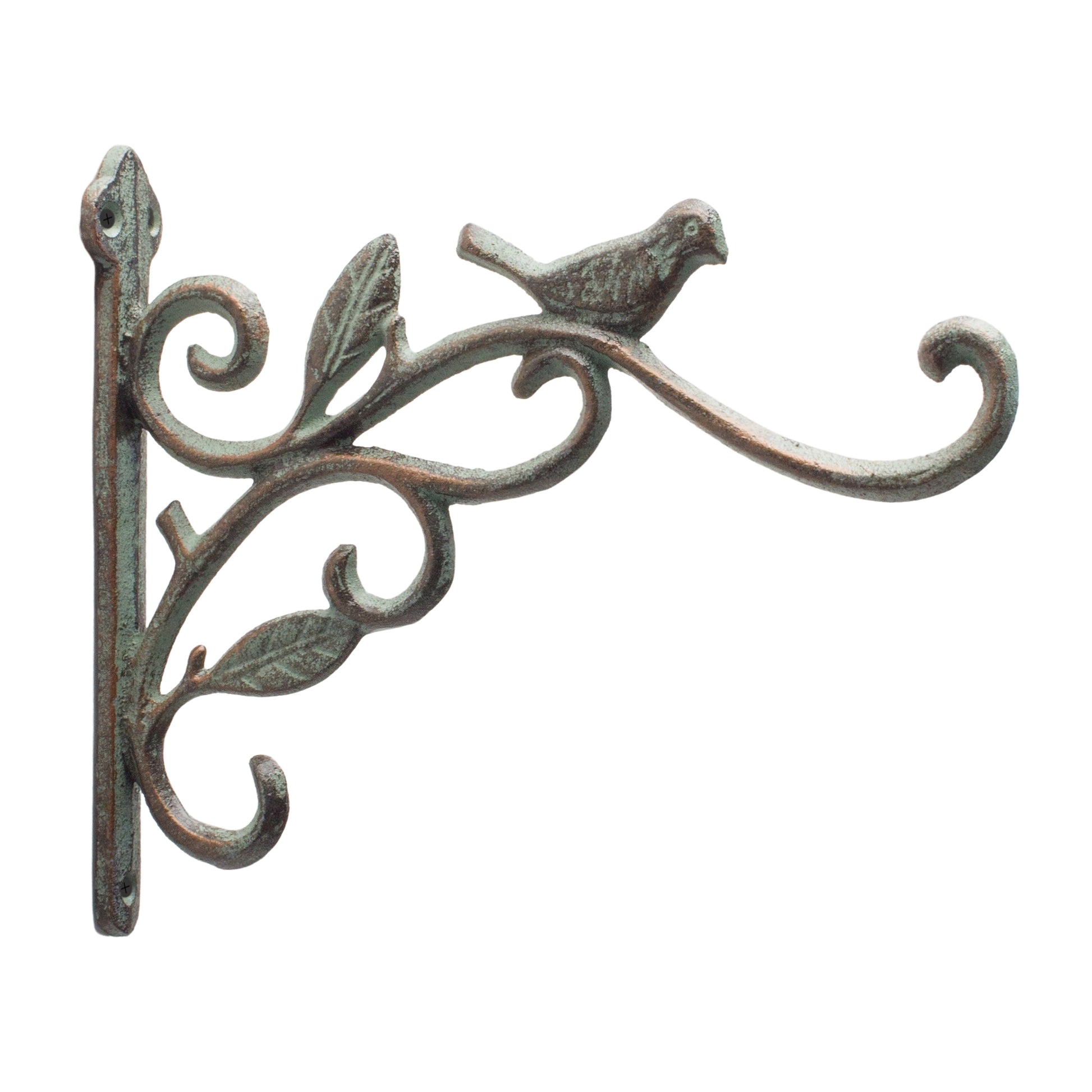 Hang your windchimes and spring floral baskets with this beautiful set of Iron Bird Hooks. The rustic distressed finish and whimsical bird and leaf accents are sure to make a statement in your garden today. The quality iron metal composition is sure to endure for seasons to come. Complete your garden decor with this set of bird hooks!